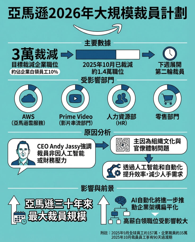 亞馬遜2026年大裁員:3萬企業職位面臨風險 第二輪裁員即將展開