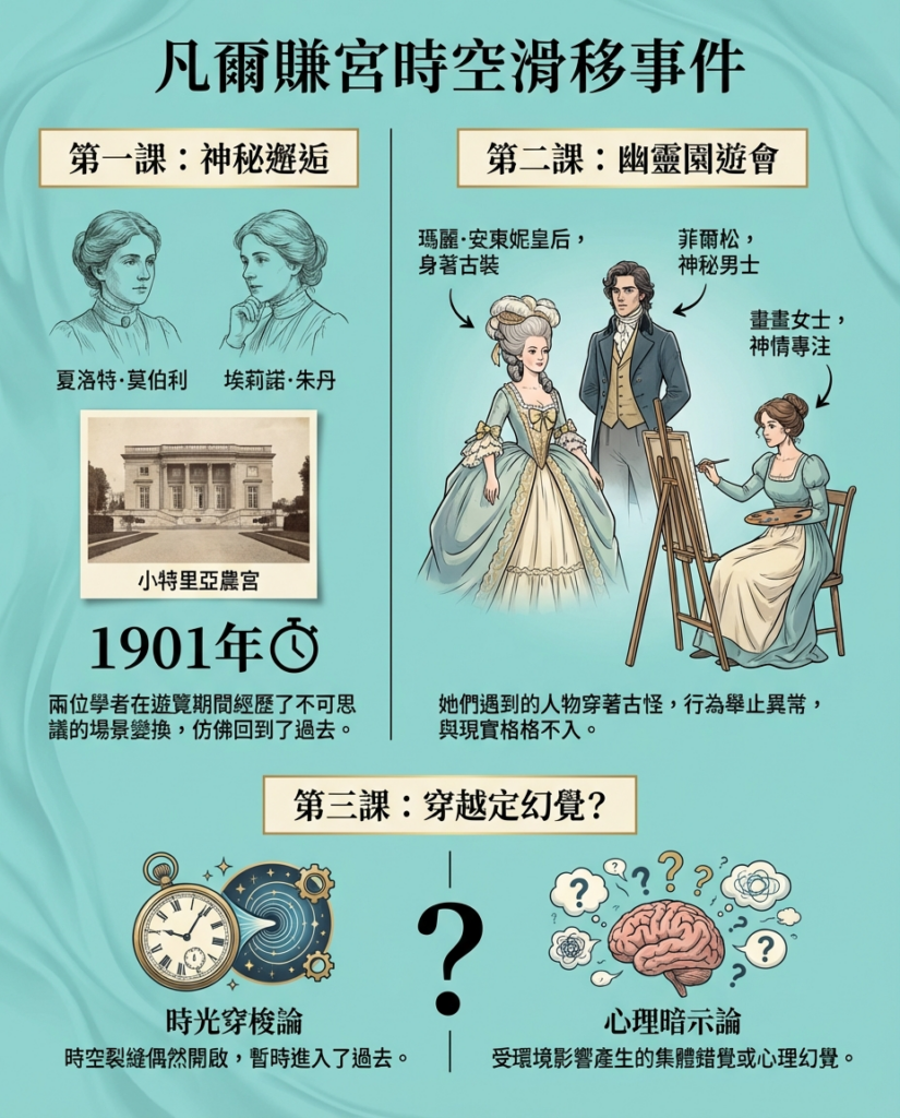 到今日,莫伯利同朱丹嘅「凡爾賺宮冒險」仍然冇一個確切答案。係真係穿越咗?定係兩位聰明嘅學者,俾自己豐富嘅想像力同知識「捉」咗一場?呢個故事嘅魅力,就喺佢嘅懸而未決。佢挑戰我哋對時間、現實同記憶嘅理解。最緊要係,佢教識我哋:有時,最令人興奮嘅唔係答案,而係探索問題嘅過程。