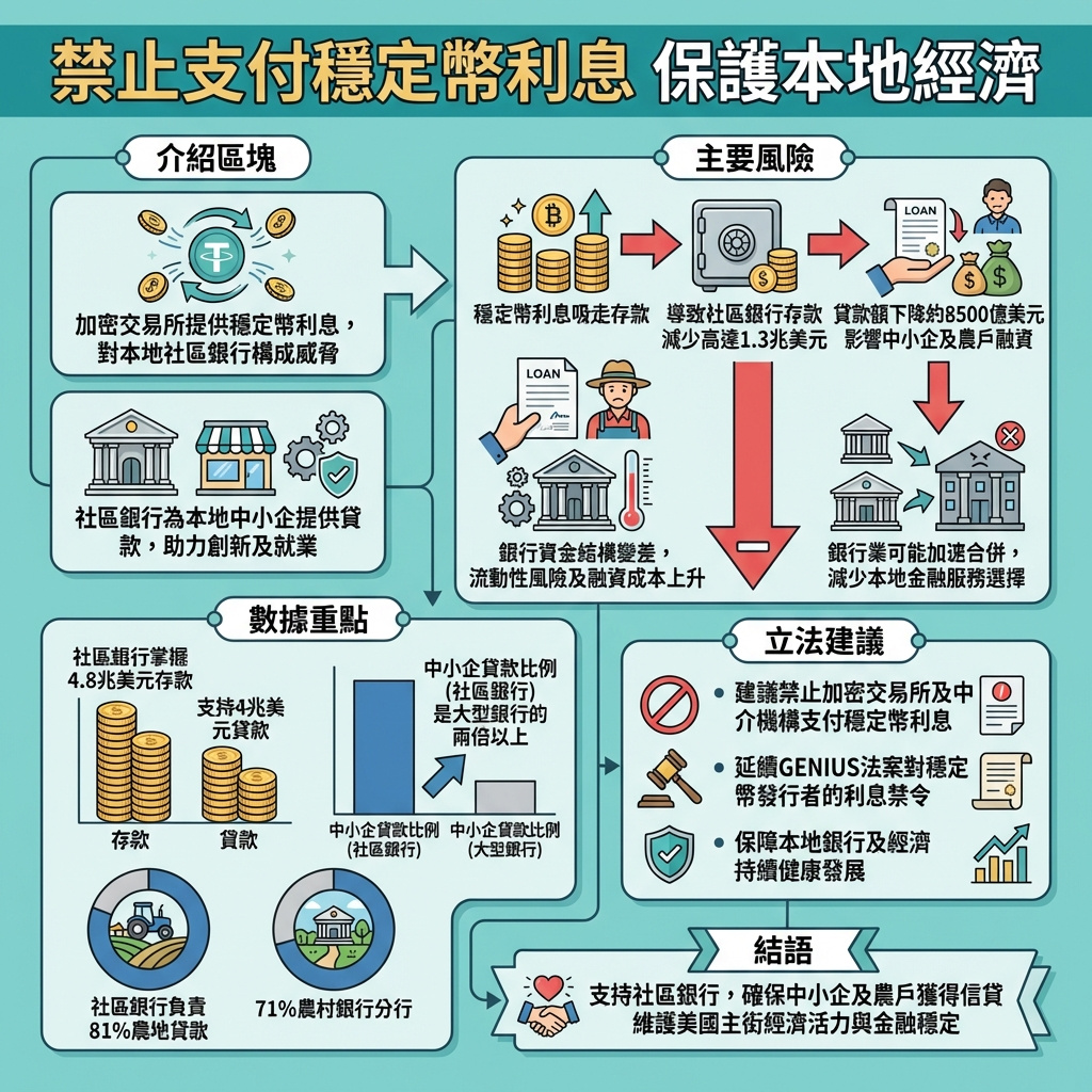 這篇文章深刻揭示了支付穩定幣在加密貨幣生態系統中帶來的潛在風險,尤其是對本地經濟和社區銀行的衝擊。隨著加密貨幣市場快速發展,穩定幣作為橋樑貨幣的角色日益重要,但其背後的收益激勵機制卻可能吸走傳統銀行的存款,削弱了社區銀行貸款能力,進而影響小企業和農村經濟。