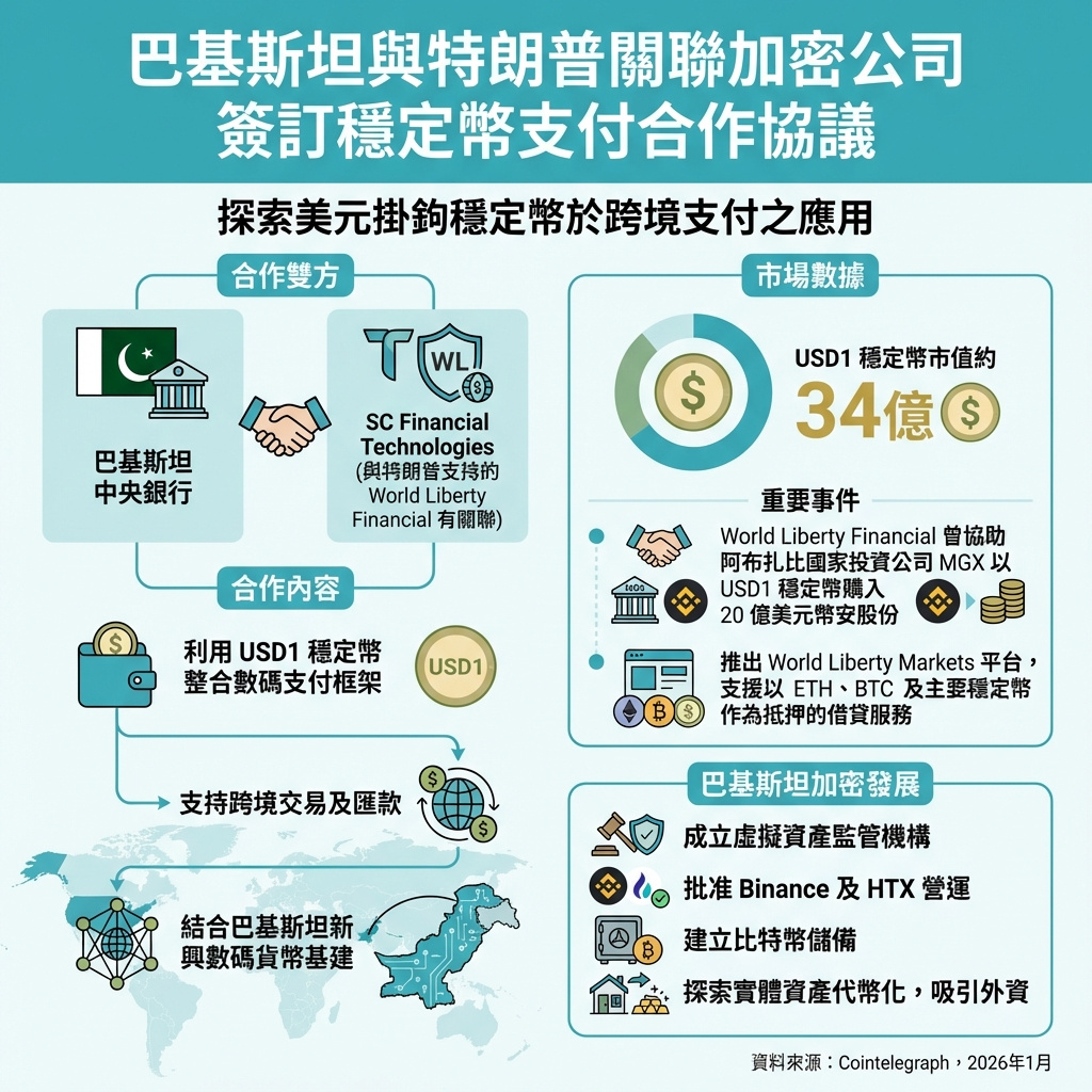 根據協議,World Liberty Financial將與巴基斯坦中央銀行合作,將USD1穩定幣整合進受監管的數字支付框架。該代幣將與巴基斯坦新興的數字貨幣基建並行運作,有望支持跨境交易,例如匯款等,消息人士向路透透露。