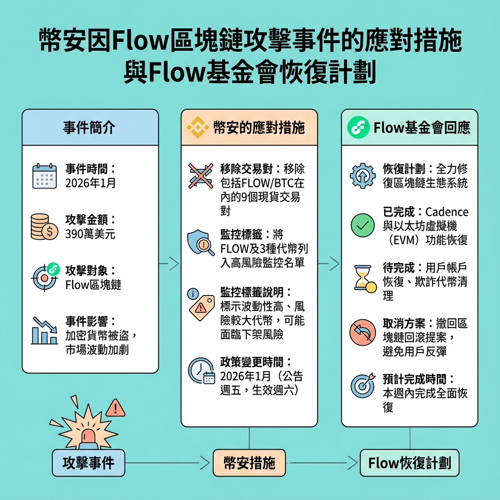 幣安下架FLOW/BTC交易對,並將FLOW標記為高風險代幣,源於區塊鏈被盜事件