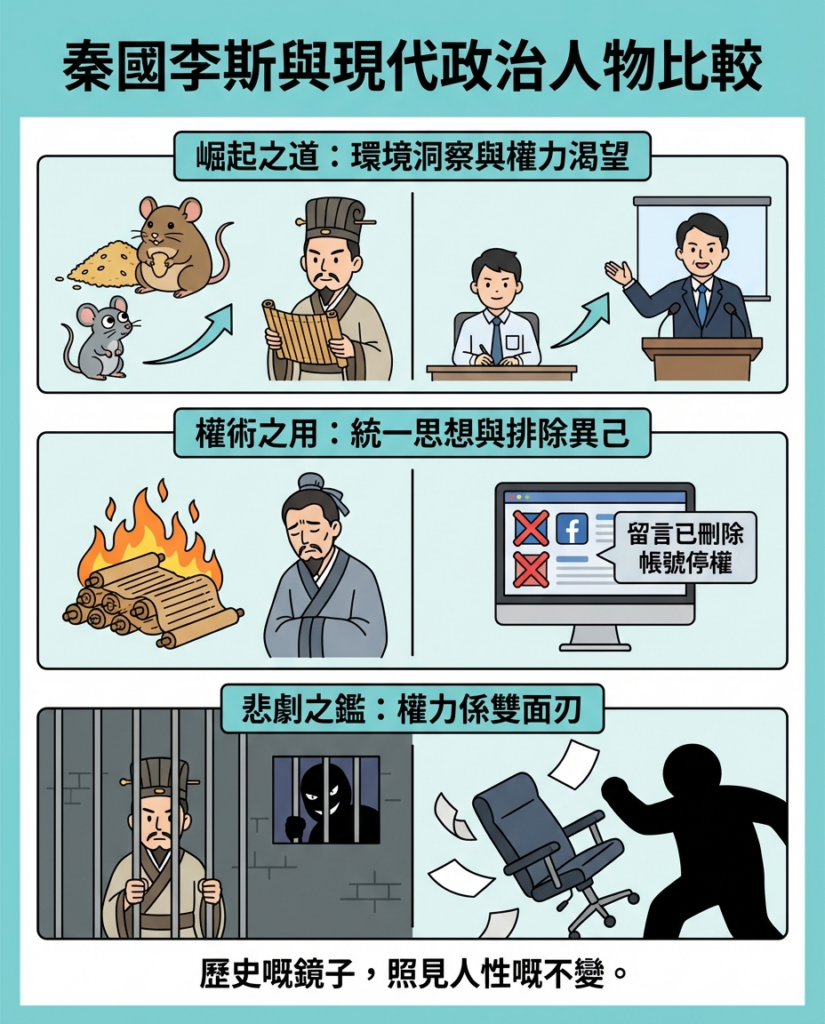 總括嚟講,李斯嘅崛起,靠嘅唔單止係能力,仲有對環境嘅洞察同埋對權力嘅渴望。呢啲,都係現代政治人物成功嘅必備條件。