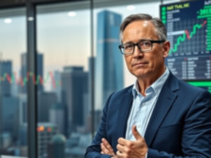 The subject should be the central figure, wearing stylish casual clothing — like a fitted jacket, dark jeans, and sunglasses — exuding calm authority and cool charisma.