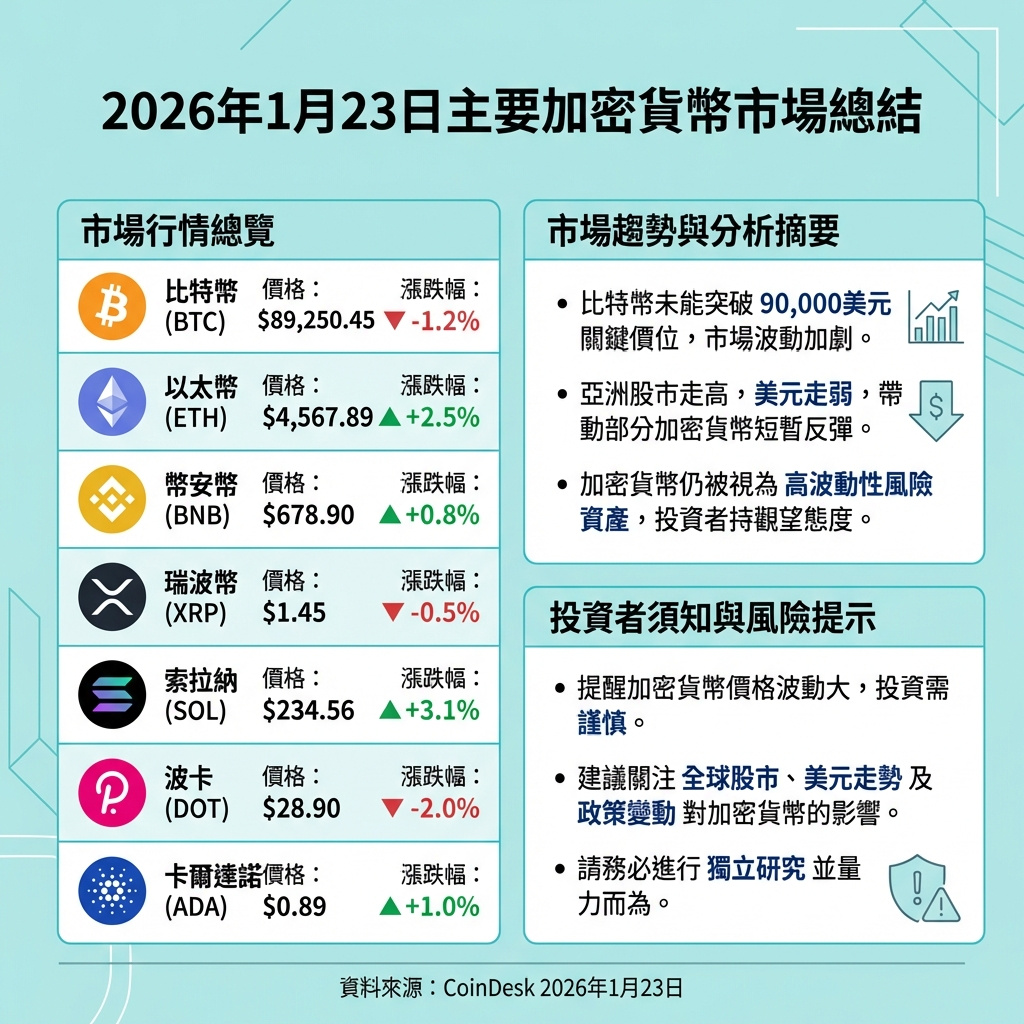 比特幣(BTC)於亞洲交易時段徘徊於9萬美元以下,儘管區域股市上升及美元走弱,但加密貨幣未能延續漲勢。比特幣價格徘徊約89,800美元,較前一交易日變化不大,但在本周因清算引發的拋售後,仍然承壓,難以重拾上升動力。
