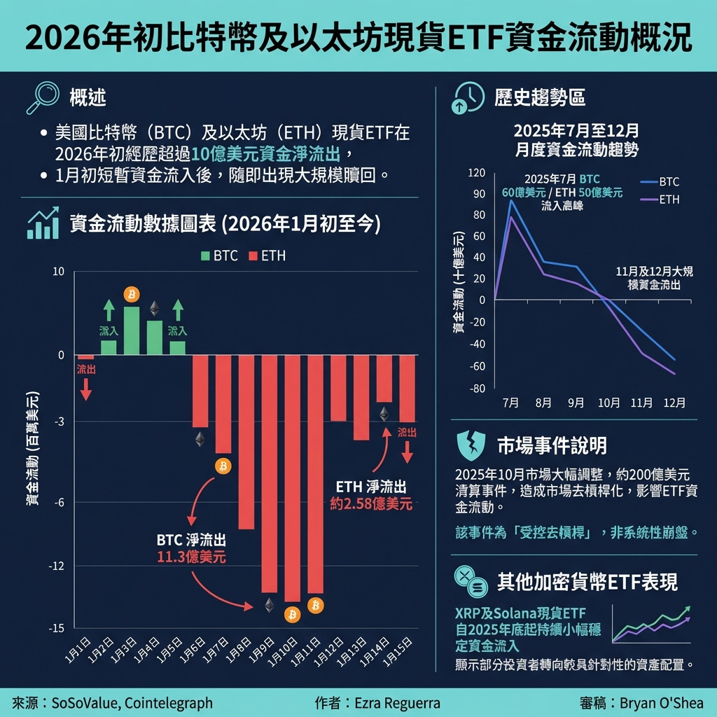 比特幣及以太坊ETF流出超過10億美元,2026年初資金流入逆轉