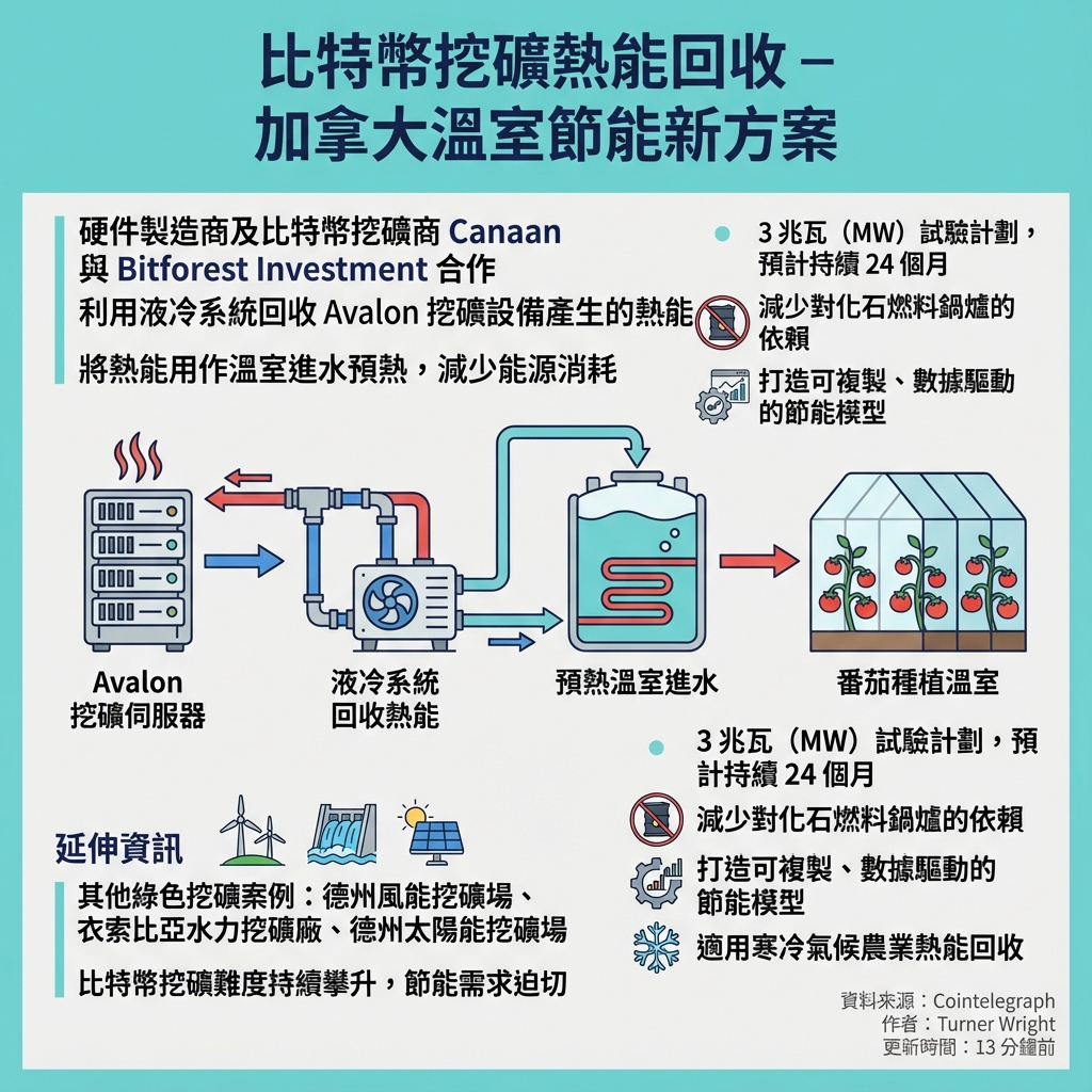 硬件製造商兼比特幣礦工Canaan持續推動將能源再利用於商業及消費用途,最新計劃是在加拿大利用礦機運算時產生的熱能,為溫室提供輔助加熱。