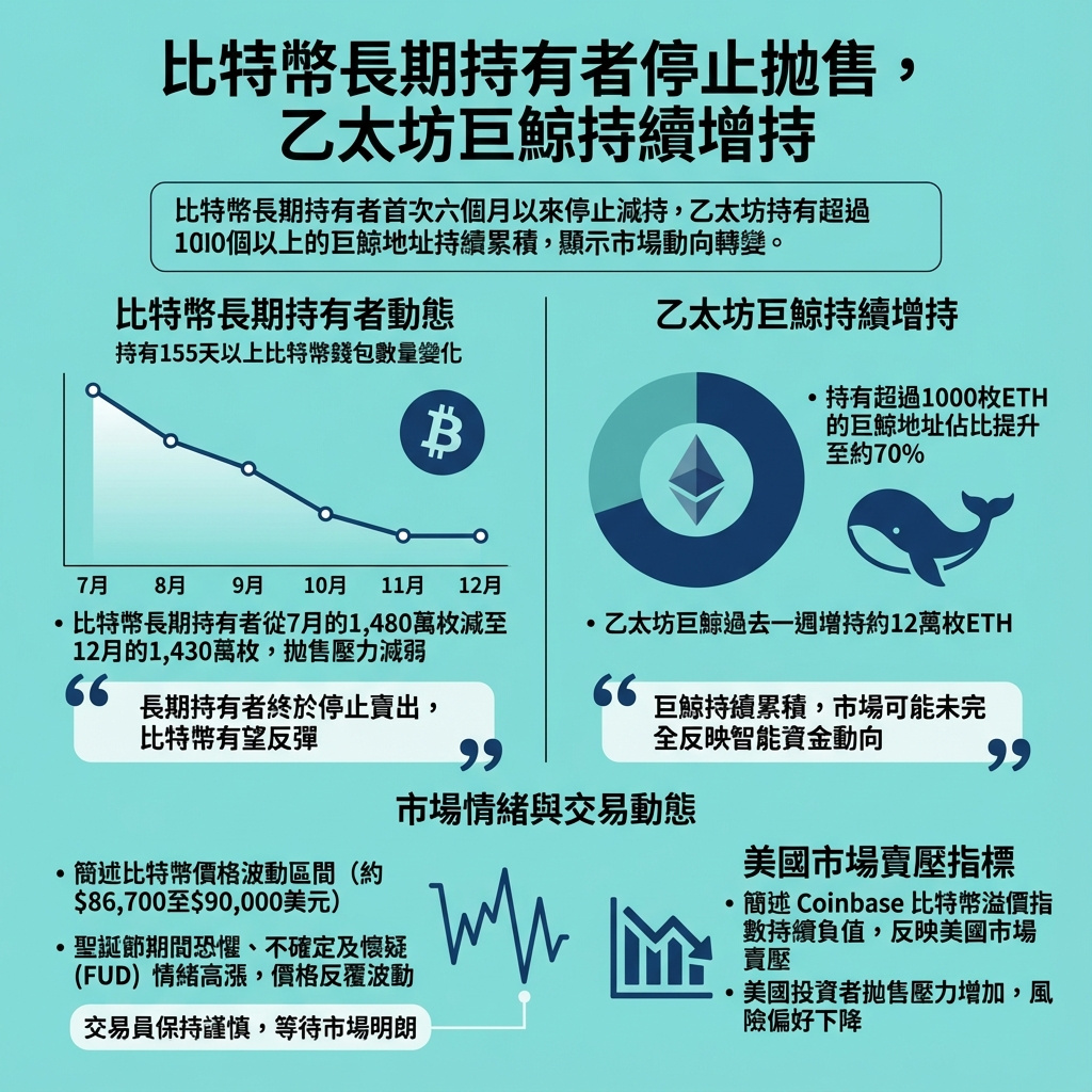 比特幣長期持有者終於停止拋售,以太坊大戶持續增持