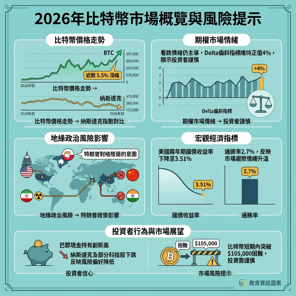 然而,比特幣向$97,000進發的同時,科技股重鎮納斯達克指數卻持續疲弱,未能重返去年11月初的26,000點水平。投資者情緒仍然分歧,因比特幣價格仍較歷史高位$126,219低約23%,而黃金及白銀價格則在2026年創下新高,顯示傳統避險資產需求依然強勁。