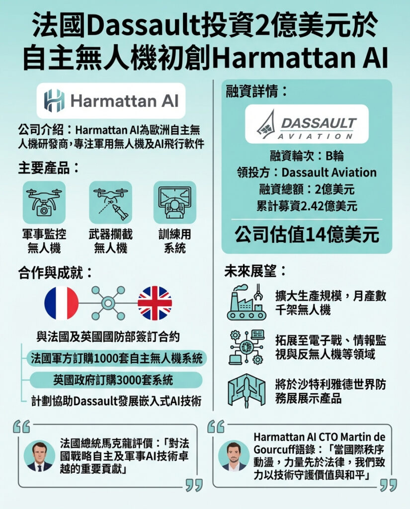 法國總統的公開表態突顯國防自主與國家安全的緊密聯繫,亦反映出歐洲在科技自主上的戰略野心。Harmattan AI的目標不僅是歐洲市場,更瞄準自由民主國家的全球需求,這種定位對於在全球軍事供應鏈中尋求突破的初創企業而言,是一大優勢。