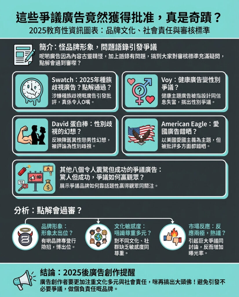 總括而言,呢啲爭議廣告係品牌試圖突破界限嘅結果,提醒我哋廣告創作唔只係藝術,更係社會責任嘅實踐場。品牌若能從中學習,避免重蹈覆轍,將來定能創作出更具影響力而且更被大眾接受嘅作品。