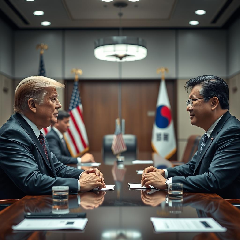 特朗普曾指責南韓「搭便車」,即依賴美國的軍事實力。現時約有2.85萬名美軍駐紮南韓,以威懾擁核的北韓。去年11月特朗普勝選前夕,南韓同意在2026年起五年計劃內,首年防務出資增加8.3%,達1.52萬億韓元(約10.9億美元)。美國則希望盟友的軍費支出達國內生產總值(GDP)的5%,然而南韓今年僅撥出61.25萬億韓元,約佔GDP的2.3%,仍有差距。