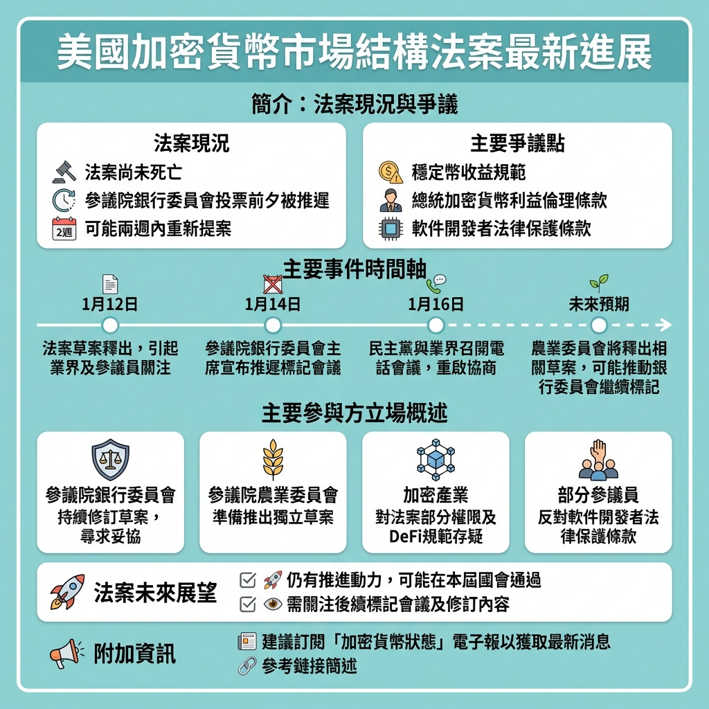 這次美國加密貨幣市場結構法案的波折,反映出監管與行業需求之間的複雜博弈。法案雖未完全夭折,但多方利益糾葛顯示出立法過程的艱難。銀行委員會與農業委員會的分歧、參議員間的政治角力,以及加密行業對監管細節的敏感反應,均凸顯出加密監管尚未達成共識的現狀。