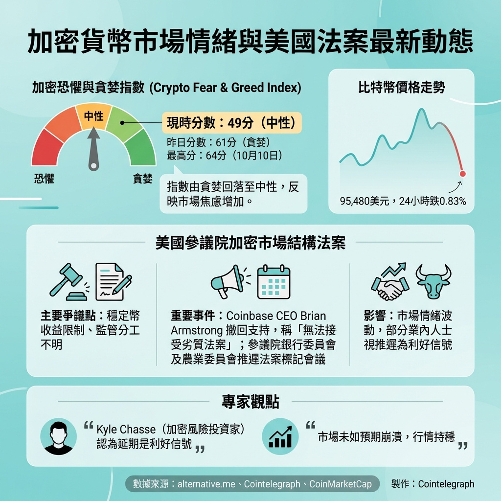 加密貨幣市場情緒因美國市場結構法案憂慮而下滑