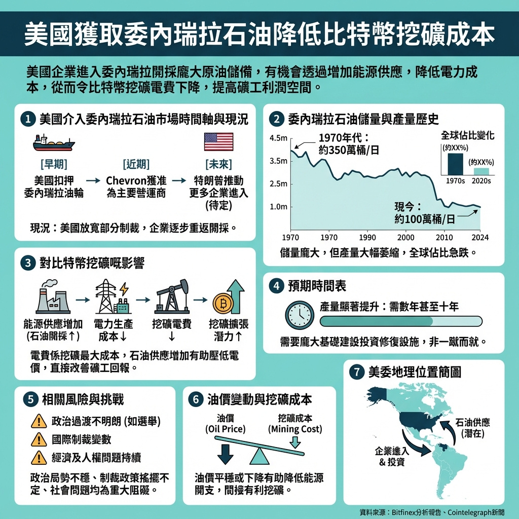 這篇報道揭示了能源市場與加密貨幣生態系統之間日益緊密的聯繫,尤其是在比特幣挖礦這一高耗能行業。美國對委內瑞拉石油資源的介入,不僅是地緣政治的策略布局,也可能在能源成本層面帶來深遠影響,間接改變比特幣挖礦的經濟模型。