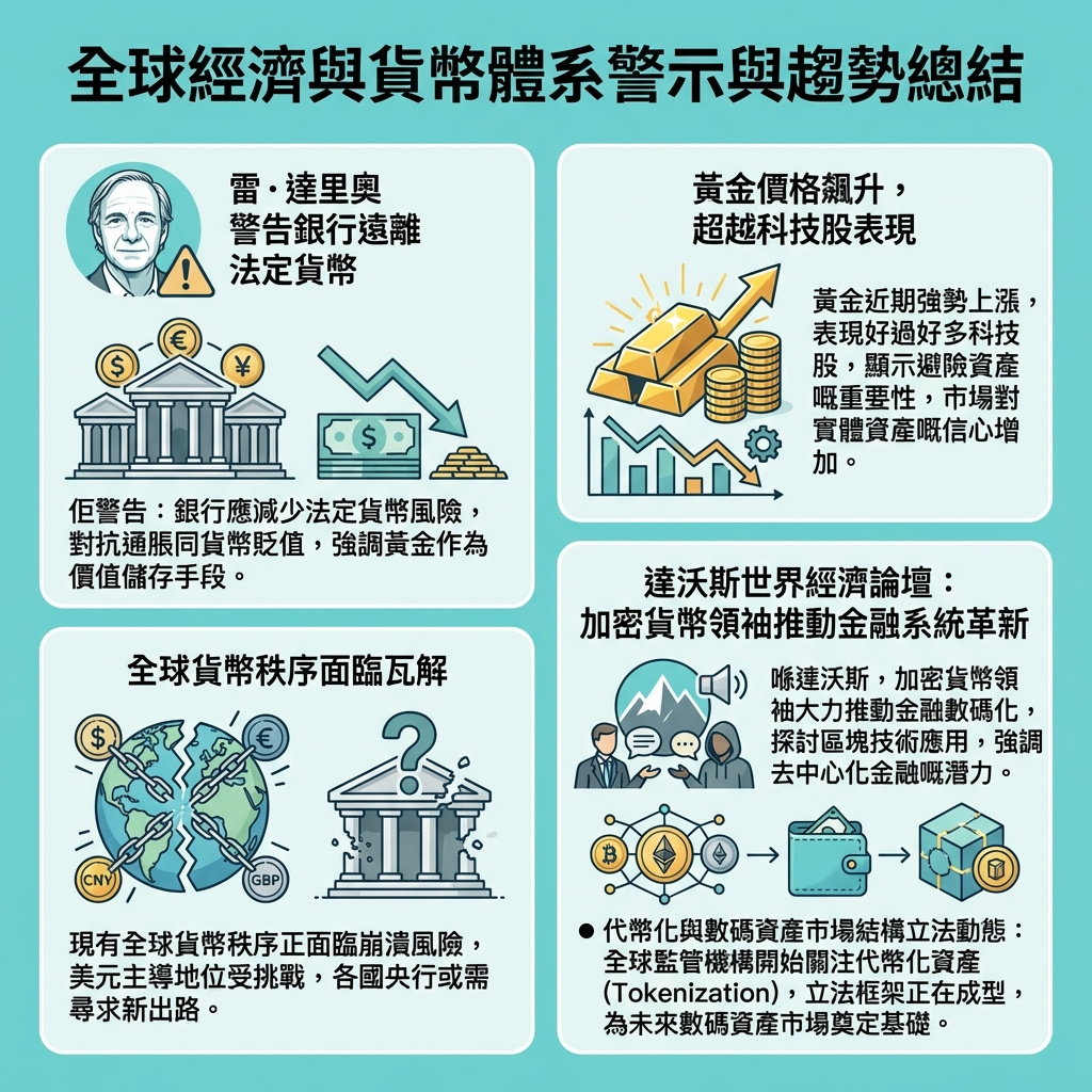 達里奧於瑞士達沃斯世界經濟論壇(WEF)接受CNBC主持人安德魯·羅斯·索金(Andrew Ross Sorkin)訪問時指出,全球貨幣秩序正處於「瓦解」狀態,並警告中央銀行對法定貨幣的處理方式正在發生改變。