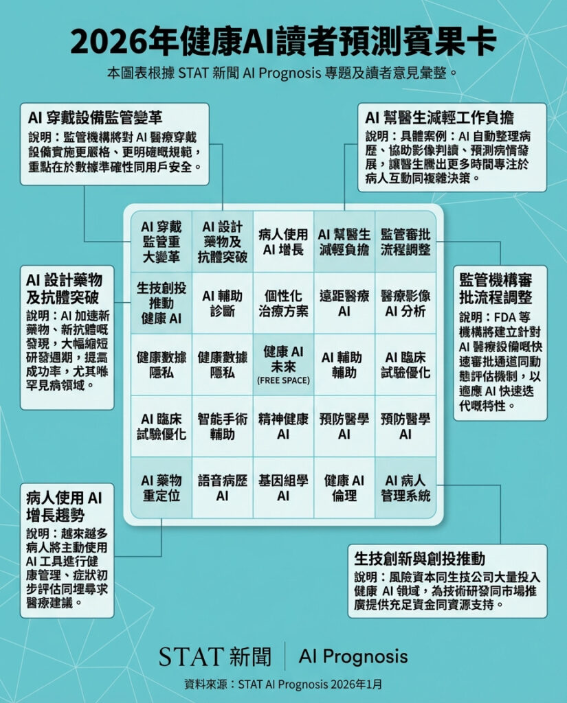 AI預測:讀者對2026年健康人工智能的展望,你的賓果卡上有甚麼?