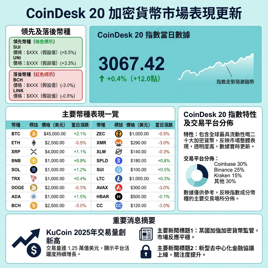 CoinDesk 20指數是一個涵蓋多個地區、在多個交易平台交易的廣泛指數,反映主流加密貨幣的整體表現。
