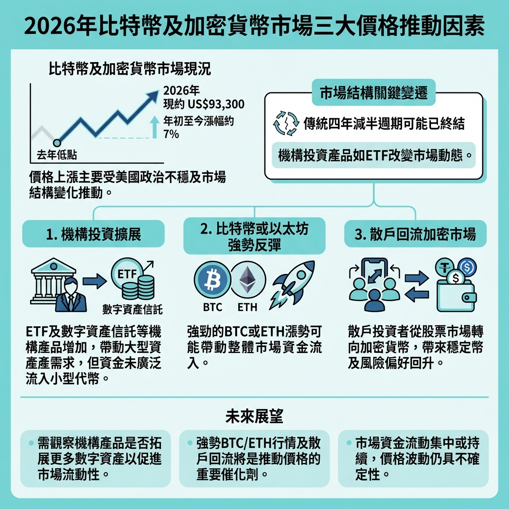 2026年推動比特幣及加密貨幣價格的三大關鍵因素