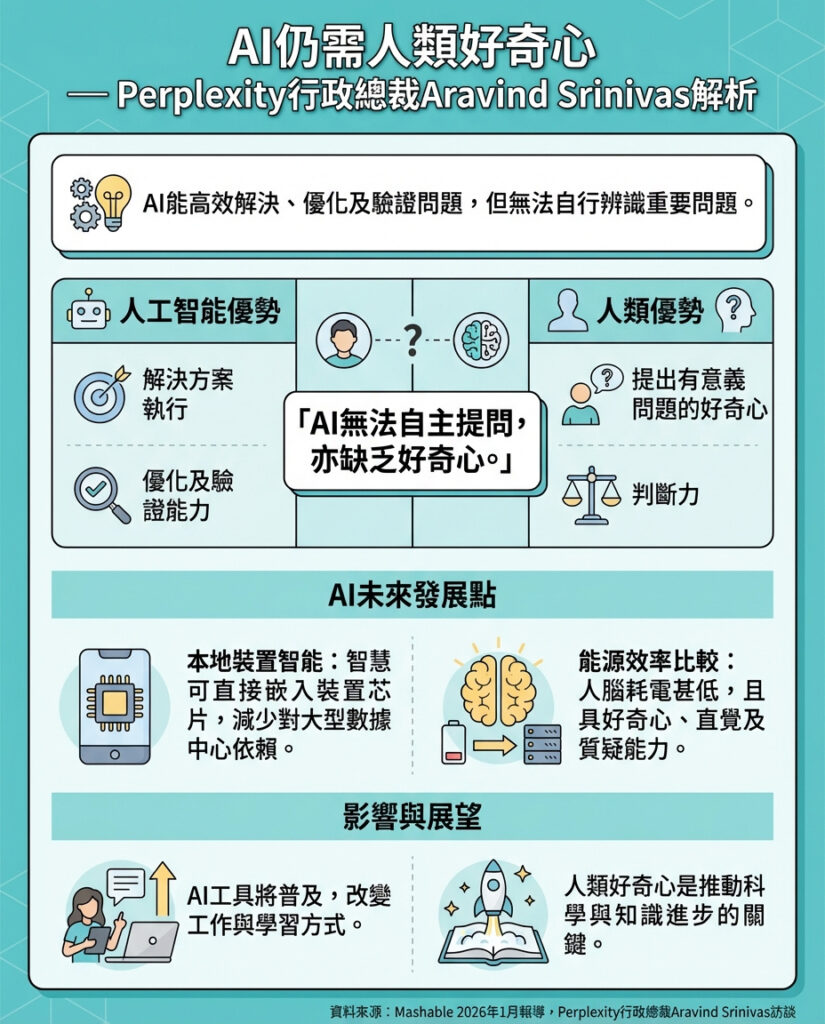 AI搜尋初創公司Perplexity嘅CEO Aravind Srinivas 喺最近一次同作家兼創業家Prakhar Gupta嘅Podcast訪談中指出,人工智能雖然喺解決問題、優化方案同驗證結果方面表現出色,但佢仍然依賴人類去判斷邊啲問題先係真正重要。Srinivas認為,AI缺乏人類嘅好奇心同提出有意義問題嘅能力,而呢啲正正係機械而家未能模仿嘅關鍵步驟。