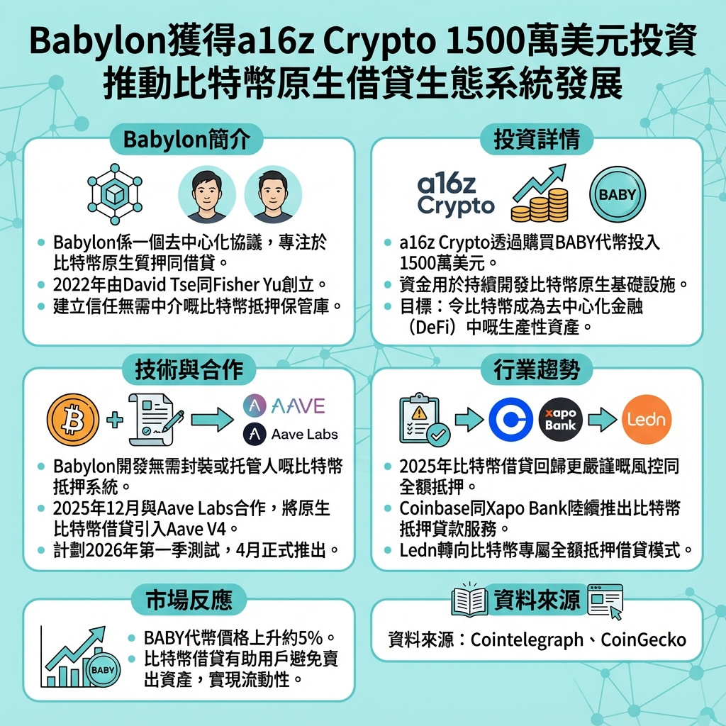 Babylon獲a16z Crypto注資1500萬美元 擴展原生比特幣借貸生態