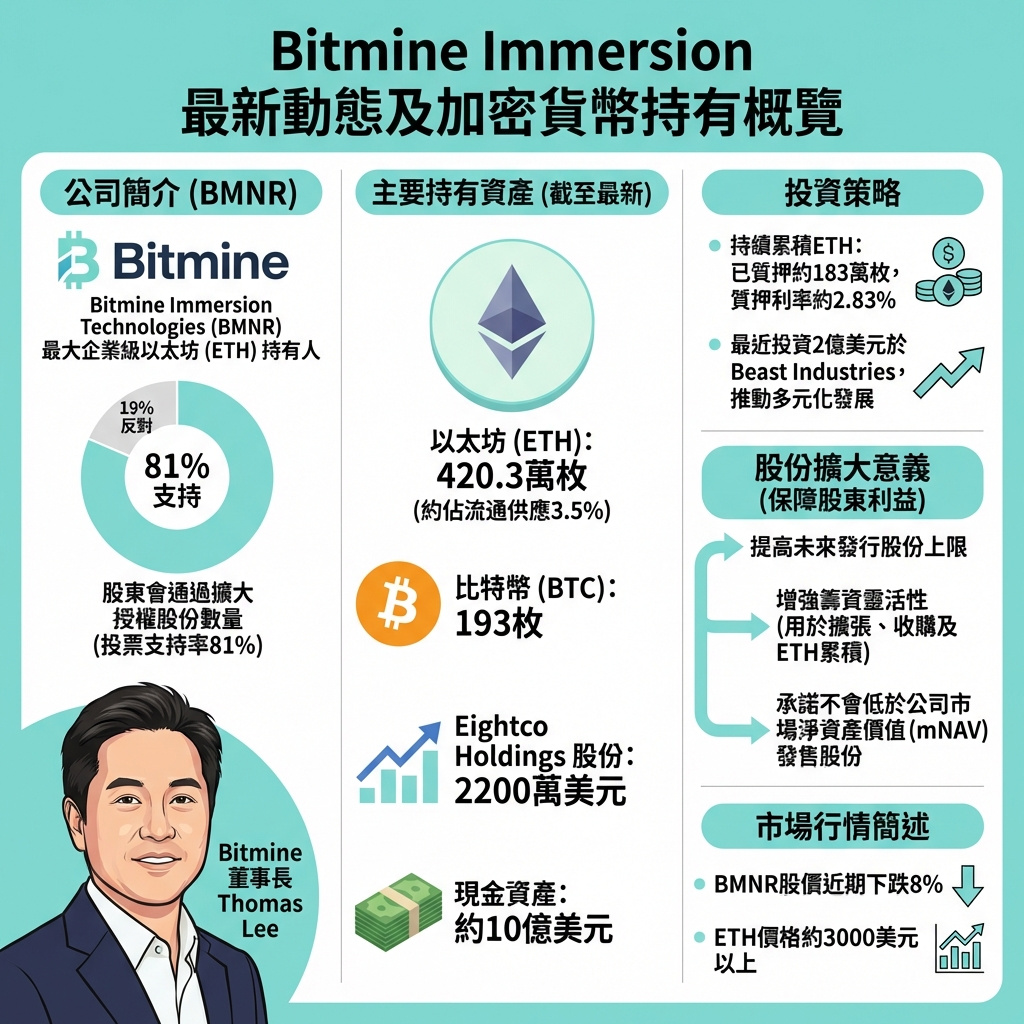 Bitmine Immersion作為以太幣的最大企業持有者,其動向對整個加密市場具指標性意義。公司不僅持有大量ETH,更積極參與質押和多元化投資,反映出其在加密資產管理上的長遠眼光。此次獲得股東高票支持擴大股份發行上限,顯示投資者認同公司未來透過資本運作加速成長的策略。