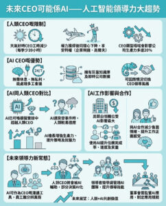 未來CEO可能係AI,提升決策效率,避免人類CEO嘅私利問題;AI輔助領導助力白領工作,溝通說服力強,領導力新趨勢!