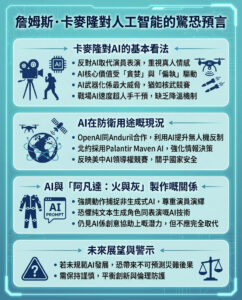 阿凡達導演詹姆士卡麥隆警告AI武器化風險,憂慮引發軍備競賽,堅持電影創作不能被生成式AI取代,反映科技與人性衝突。