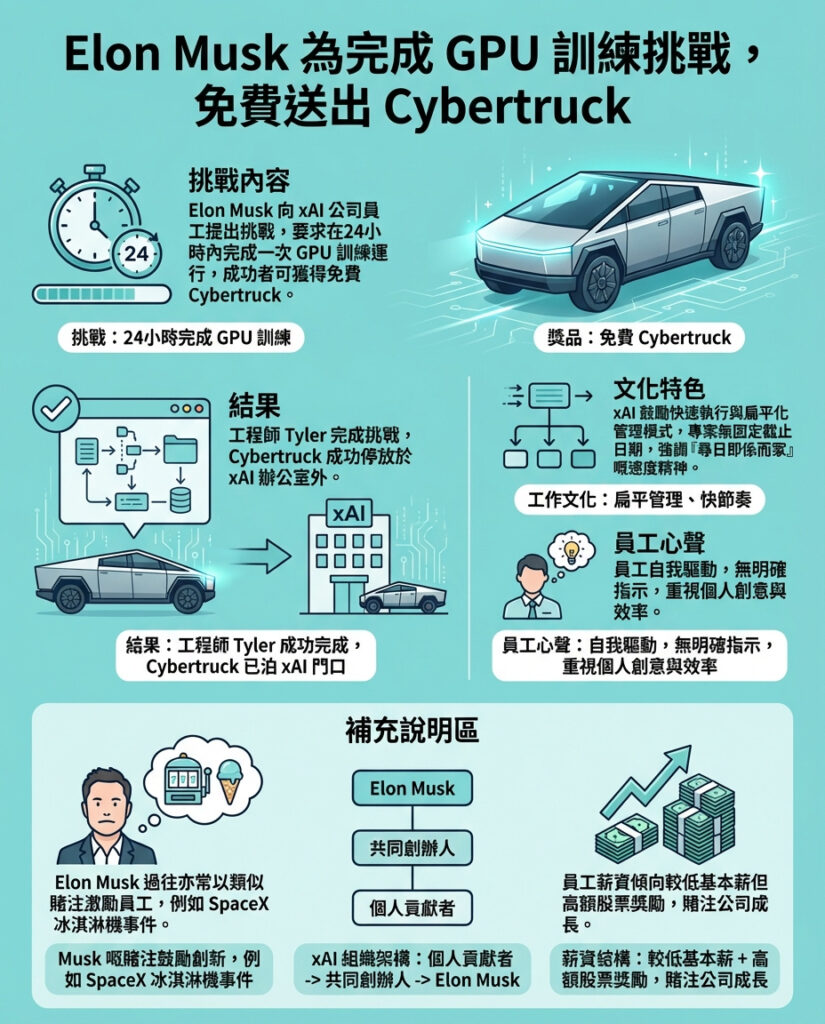 Elon Musk曾經承諾員工24小時內完成GPU訓練任務即可免費獲得Cybertruck,前xAI工程師透露