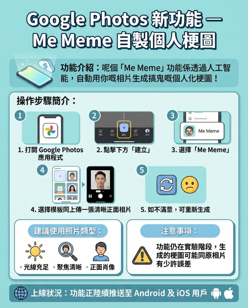 總括而言,Google 透過「Me Meme」展示了 AI 在創意內容領域的潛力,同時提醒我們在享受便利與娛樂的同時,也要關注背後的技術風險和個人資料保護問題。這對香港用戶來說,既是機遇也是挑戰,值得持續關注。