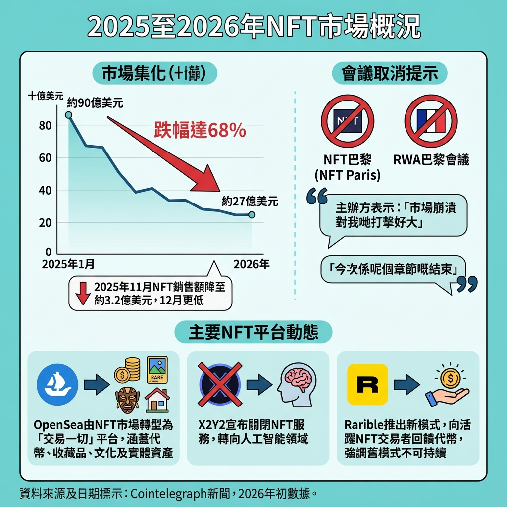 巴黎NFT及實體資產(RWA)會議的主辦方在僅提前一個月通知下,宣布取消原定於2026年2月舉行的活動,原因直指市場環境惡化。
