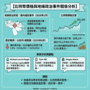 美國攻擊委內瑞拉後,比特幣價格仍穩定,分析指跌幅機會細,或反映市場韌性。你認為地緣政治事件會否長遠影響加密貨幣走勢?