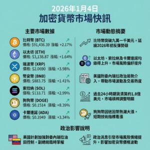 比特幣突破九萬一千美元,受委內瑞拉政治變動及美國干預影響,帶動以太坊、狗狗幣等加密貨幣上升。你認為地緣政治會否持續左右加密市場走勢?