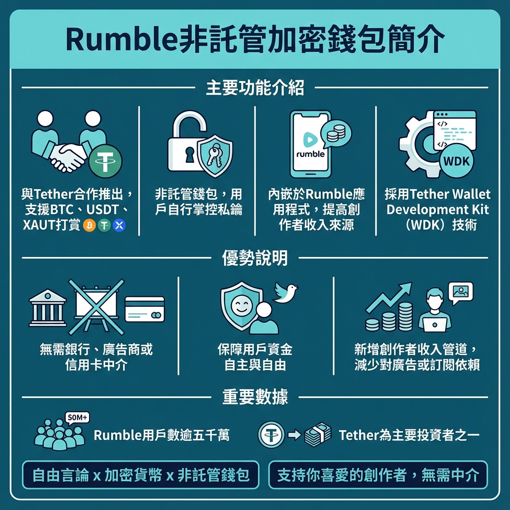 Rumble與Tether合作推出的非託管錢包,標誌著內容創作平台與加密技術融合的又一重要里程碑。非託管錢包的設計強調用戶對資產的完全掌控,符合加密貨幣社群追求去中心化和自主權的核心理念。這種打賞機制不僅能繞過傳統金融系統的繁瑣與限制,更有助於創作者直接從粉絲獲得支持,減少對廣告收入的依賴,提升收入多元化。