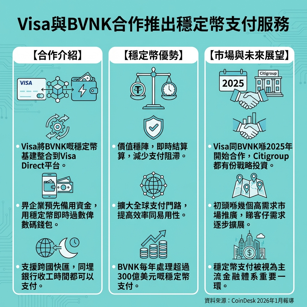 BVNK每年處理超過300億美元的穩定幣支付,將提供相關基礎設施支持。Visa於2025年5月透過其風險投資部門首次投資BVNK,隨後花旗銀行於5個月後跟進戰略投資。此次合作反映出機構對穩定幣基礎設施作為主流金融系統一部分的信心日增。