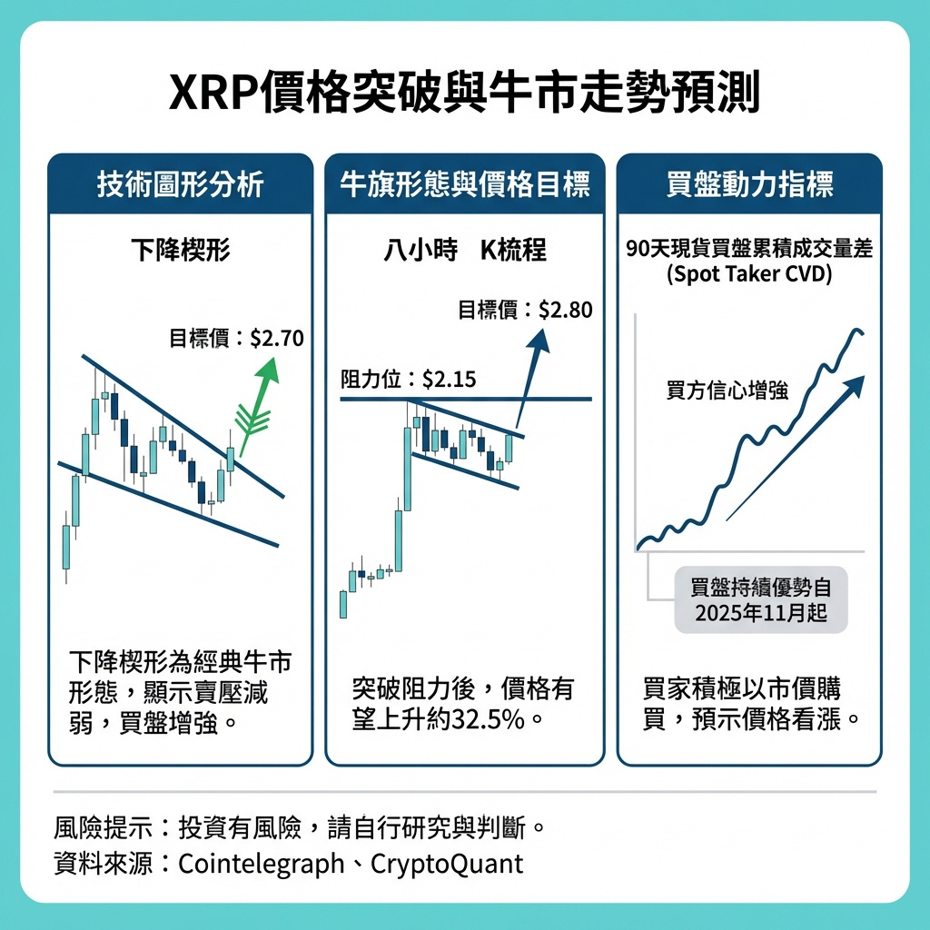 XRP近期嘅技術走勢同鏈上數據確實展現出強烈嘅牛市信號,尤其係跌勢楔形同牛旗形態嘅突破,配合買家主導嘅成交量,令價格有望挑戰2.80美元嘅目標。對於投資者嚟講,呢啲技術指標提供咗一個相對清晰嘅短期價格方向參考。