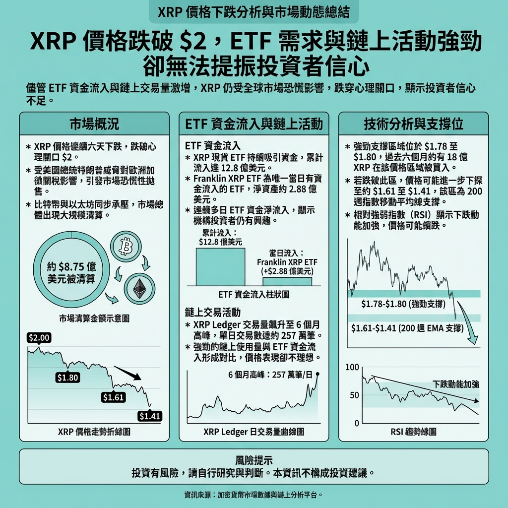 XRP價格跌穿2美元關口,儘管ETF需求強勁及網絡活動活躍